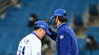 [OSEN=잠실, 곽영래 기자] 14일 서울 잠실야구장에서 ‘2021 신한은행 SOL KBO 리그’ 두산 베어스와 KT 위즈의 경기가 열렸다.4회초 무사 1루 두산 정재훈 코치가 마운드에 올라 이영하와 이야기를 나누고 있다. /youngrae@osen.co.kr