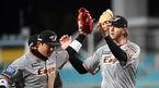 [OSEN=대구, 이대선 기자] 14일 오후 대구 삼성라이온즈파크에서 ’2021 신한은행 SOL KBO 리그' 삼성 라이온즈와 한화 이글스의 경기가 열렸다.5회말 2사에서 한화 킹험이 삼성 김헌곤을 땅볼로 처리하고 동료들과 환호하며 더그