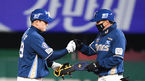 [OSEN=인천,박준형 기자] 14일 오후 인천SSG랜더스필드에서 2021 신한은행 SOL KBO리그 SSG 랜더스와 NC 다이노스의 경기가 진행됐다.5회초 1사 1,2루 NC 강진성이 선취 1타점 적시 2루타를 날리고 이종욱 1루 코치와 하이파이브를 하고 있