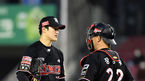 [OSEN=잠실, 곽영래 기자] 14일 서울 잠실야구장에서 ‘2021 신한은행 SOL KBO 리그’ 두산 베어스와 KT 위즈의 경기가 열렸다.2회말 1사 1,2루 KT 배제성과 장성우가 이야기를 나누고 있다. /youngrae@osen.co.kr
