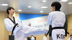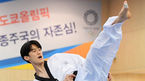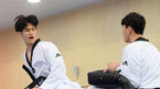 [OSEN=진천, 민경훈 기자] 14일 오후 충청북도 진천군 진천국가대표선수촌에서 도쿄올림픽 G-100 미디어데이 행사가 진행됐다.태권도 대표팀 인교돈이 훈련 공개를 하고 있다. / rumi@osen.co.kr
