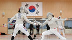 [OSEN=진천, 민경훈 기자] 14일 오후 충청북도 진천군 진천국가대표선수촌에서 도쿄올림픽 G-100 미디어데이 행사가 진행됐다.펜싱 대표팀 황선아와 최수연이 훈련공개를 하고 있다./ rumi@osen.co.kr