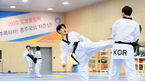 [OSEN=진천, 민경훈 기자] 14일 오후 충청북도 진천군 진천국가대표선수촌에서 도쿄올림픽 G-100 미디어데이 행사가 진행됐다.태권도 대표팀 이대훈이 훈련 공개를 하고 있다. / rumi@osen.co.kr