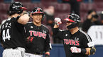[OSEN=고척, 민경훈 기자] 15일 오후 서울 고척 스카이돔에서 ‘2021 신한은행 SOL KBO 리그’키움 히어로즈와 LG 트윈스의 경기가 열렸다.6회초 2사 주자 1,3루 LG 김민성 타석에서 키움 선발 요키시가 노병오 투수 코치와 얘기를