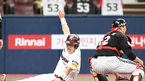 [OSEN=고척, 민경훈 기자] 15일 오후 서울 고척 스카이돔에서 ‘2021 신한은행 SOL KBO 리그’키움 히어로즈와 LG 트윈스의 경기가 열렸다.4회말 1사 주자 1,3루 키움 김은성의 좌익수 왼쪽 2타점 적시 2루타때 박동원이 홈으로 몸