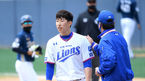 [OSEN=경산, 이대선 기자] 15일 경북 경산 삼성 라이온즈 볼파크에서 '2021 U+프로야구 KBO 퓨처스리그' 삼성 라이온즈와 NC 다이노스의 경기가 열렸다.이날 NC는 삼성에 6-2 역전승을 거뒀다.8회초 마운드를 방문한 삼성 권오원 코치가