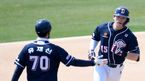 [OSEN=인천, 김성락 기자] 15일 인천 강화 SSG퓨처스필드에서 ‘2021 퓨처스리그’ SSG 랜더스와 두산 베어스의 경기가 열렸다.1회초 두산 국해성이 선취 솔로 홈런을 날린 뒤 유재신 코치와 기쁨을 나누고 있다./ksl0919@osen.co.kr