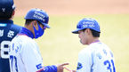 [OSEN=경산, 이대선 기자] 15일 경북 경산 삼성 라이온즈 볼파크에서 '2021 U+프로야구 KBO 퓨처스리그' 삼성 라이온즈와 NC 다이노스의 경기가 열렸다.3회말 2사에서 삼성 양우현이 우전 안타를 치고 강봉규 코치와 손가락을 맞대고