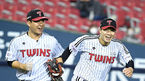 [OSEN=잠실, 지형준 기자] 16일 오후 서울 잠실야구장에서 ‘2021 신한은행 SOL KBO리그’ LG 트윈스와 두산 베어스의 경기가 열렸다.7회초 2사 1,2루에서 LG 김민성이 두산 김재환의 3루땅볼 타구를 처리하고 김대유와 기뻐하고