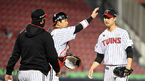 [OSEN=수원, 조은정 기자] 16일 오후 수원 KT위즈파크에서‘2021 신한은행 SOL KBO리그’ KT 위즈와 키움 히어로즈의 경기가 열렸다.8회초 1사 키움 박병호가 동점 좌월 솔로포를 날린 뒤 더그아웃에서 홍원기 감독과 이정후의