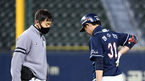 [OSEN=잠실, 지형준 기자] 16일 오후 서울 잠실야구장에서 ‘2021 신한은행 SOL KBO리그’ LG 트윈스와 두산 베어스의 경기가 열렸다.5회초 무사 1루에서 2루땅볼로 물러난 두산 정수빈이 허리 부상을 호소하며 상태를 체크하고