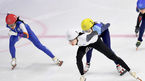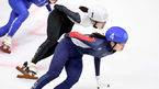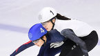 [OSEN=목동, 김성락 기자] 16일 오후 서울 양천구 목동종합운동장 실내 아이스링크에서 ’35회 전국남녀 종별종합 쇼트트랙스피드스케이팅 선수권대회’가 열렸다.여자일반부 1000M 결승 (파) 심석희, (흰) 김아랑이 몸싸움을