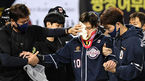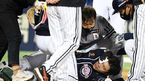 [OSEN=잠실, 지형준 기자] 16일 오후 서울 잠실야구장에서 ‘2021 신한은행 SOL KBO리그’ LG 트윈스와 두산 베어스의 경기가 열렸다.8회초 1사에서 두산 박세혁이 LG 김대유의 투구에 얼굴 부위를 맞고 상태를 체크하며 구급차