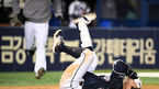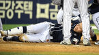 [OSEN=잠실, 지형준 기자] 16일 오후 서울 잠실야구장에서 ‘2021 신한은행 SOL KBO리그’ LG 트윈스와 두산 베어스의 경기가 열렸다.8회초 1사에서 두산 박세혁이 LG 김대유의 투구에 얼굴 부위를 맞고 괴로워하고 있다. /jpnews@os