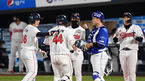 [OSEN=잠실, 지형준 기자] 16일 오후 서울 잠실야구장에서 ‘2021 신한은행 SOL KBO리그’ LG 트윈스와 두산 베어스의 경기가 열렸다.8회초 1사에서 LG 김대유가 두산 박세혁에 헤드샷을 허용하며 퇴장당하고 있다. /jpnews@osen.co.kr