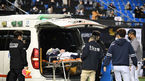 [OSEN=잠실, 지형준 기자] 16일 오후 서울 잠실야구장에서 ‘2021 신한은행 SOL KBO리그’ LG 트윈스와 두산 베어스의 경기가 열렸다.8회초 1사에서 두산 박세혁이 LG 김대유의 투구에 얼굴 부위를 맞고 구급차에 실려 이동하고