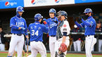 [OSEN=부산, 이대선 기자] 17일 오후 부산 사직야구장에서 ’2021 신한은행 SOL KBO 리그' 롯데 자이언츠와 삼성 라이온즈의 경기가 열렸다.2회초 1사 1루에서 삼성 김헌곤이 좌중월 투런 홈런을 치고 홈에서 이원석, 강명구 코치의