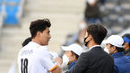 [OSEN=인천, 곽영래 기자] 17일 오후 인천 축구전용경기장에서 '하나원큐 K리그1 2021' 인천 유나이티드와 제주 유나이티드의 경기가 열렸다.전반 제주 주민규가 선제골을 넣은 뒤 남기일 감독과 이야기를 나누고 있다. /youngrae@osen.c