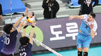 [OSEN=인천, 민경훈 기자] 17일 오후 인천 계양체육관에서 ‘도드람 2020-2021 V-리그’ 남자부 챔피언결정 5차전 우리카드와 대한항공의 경기가 열렸다.1세트 대한항공 진성태가 공격에 성공한 후 백광현과 기쁨을 나누고 있