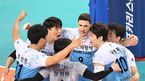 [OSEN=인천, 민경훈 기자] 17일 오후 인천 계양체육관에서 ‘도드람 2020-2021 V-리그’ 남자부 챔피언결정 5차전 우리카드와 대한항공의 경기가 열렸다.1세트 우리카드 선수들이 공격에 성공한 후 기뻐하고 있다. /rumi@osen.co.kr
