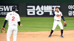 [OSEN=부산, 이대선 기자] 17일 오후 부산 사직야구장에서 ’2021 신한은행 SOL KBO 리그' 롯데 자이언츠와 삼성 라이온즈의 경기가 열렸다.9회초 1사 1,2루에서 롯데 배성근이 오윤석과 글러브를 바꾸며 3루 수비로 이동하고 있다. /