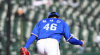 [OSEN=부산, 이대선 기자] 18일 오후 부산 사직야구장에서 ’2021 신한은행 SOL KBO 리그' 롯데 자이언츠와 삼성 라이온즈의 경기가 열렸다.7회말 2사 1,2루에서 삼성 원태인이 롯데 이병규를 내야땅볼로 처리하고 마운드를 내려가