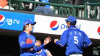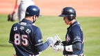 [OSEN=잠실,박준형 기자] 18일 오후 잠실야구장에서 '2021 신한은행 SOL KBO 리그' LG 트윈스와 두산 베어스의 경기가 진행됐다.5회초 1사 만루 두산 허경민이 2타점 적시타를 날리고 김주찬 1루코치와 하이파이브를 하고 있다. / soul1014