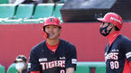 [OSEN=인천, 조은정 기자] 18일 오후 인천SSG 랜더스필드에서 ‘2021 신한은행 SOL KBO리그’ SSG 랜더스와 KIA 타이거즈의 경기가 열렸다.6회초 2사 1루 KIA 류지혁이 SSG 오원석의 공에 몸을 맞은 뒤 출루한 후 사과를 받고 있다. /cej