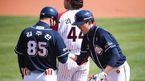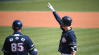 [OSEN=잠실,박준형 기자] 18일 오후 잠실야구장에서 '2021 신한은행 SOL KBO 리그' LG 트윈스와 두산 베어스의 경기가 진행됐다.2회초 1사 2루 두산 안재석이 안타를 날리고 김주찬 코치와 하이파이브를 하고 있다. / soul1014@osen.co.kr