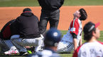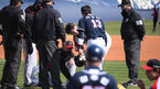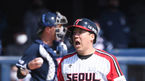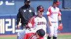 [OSEN=잠실,박준형 기자] 18일 오후 잠실야구장에서 '2021 신한은행 SOL KBO 리그' LG 트윈스와 두산 베어스의 경기가 진행됐다.2회초 2사 1,3루 두산 허경민이 자신의 타구에 맞은 LG 이민호에게 미안함을 표시하고 있다. / soul1014@osen.co.