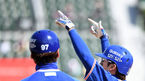[OSEN=부산, 이대선 기자] 18일 오후 부산 사직야구장에서 ’2021 신한은행 SOL KBO 리그' 롯데 자이언츠와 삼성 라이온즈의 경기가 열렸다.3회초 2사 1,2루에서 삼성 박해민이 우중간 적시타를 치고 세리머니를 펼치고 있다. /sunday@o