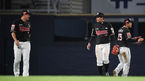 [OSEN=창원,박준형 기자] 20일 오후 창원NC파크에서 '2021 신한은행 SOL KBO 리그' NC 다이노스와 KT 위즈의 경기가 진행됐다.5회말 1사 NC 나성범의 안타때 KT 황재균과 권동진이 타구를 놓친뒤 아쉬워하고 있다. / soul1014@osen.co.kr