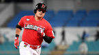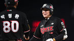 [OSEN=창원,박준형 기자] 20일 오후 창원NC파크에서 '2021 신한은행 SOL KBO 리그' NC 다이노스와 KT 위즈의 경기가 진행됐다.5회초 1사 1루 KT 유한준이 안타를 날린뒤 미소 짓고 있다. / soul1014@osen.co.kr