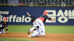 [OSEN=잠실, 지형준 기자] 20일 오후 서울 잠실야구장에서 ‘2021 신한은행 SOL KBO리그’ LG 트윈스와 KIA 타이거즈의 경기가 열렸다.4회말 2사 만루에서 LG 채은성이 견제에 걸려 KIA 류지혁에 태그아웃당하고 있다. /jpnews@osen.co.kr