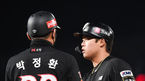 [OSEN=창원,박준형 기자] 20일 오후 창원NC파크에서 '2021 신한은행 SOL KBO 리그' NC 다이노스와 KT 위즈의 경기가 진행됐다.5회초 1사 2루 KT 강백호가 1타점 적시타를 날리고 박정환 코치와 하이파이브를 하고 있다. / soul1014@osen.co.kr