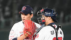 [OSEN=부산,박준형 기자] 21일 오후 부산사직구장에서 '2021 신한은행 SOL KBO 리그' 롯데 자이언츠와 두산 베어스의 경기가 진행됐다.4회초 두산 김재환에게 선취 2점 홈런을 허용한 롯데 선발투수 김진욱과 강태율 포수가 마운드서