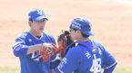[OSEN=이천, 곽영래 기자] 21일 경기도 이천시 두산베어스파크에서 '2021 KBO 퓨처스리그' 두산 베어스와 삼성 라이온즈의 경기가 열렸다.2회말 1사 1,2루 삼성 허윤동과 권정웅이 이야기를 나누고 있다. /youngrae@osen.co.kr