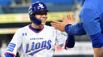 [OSEN=대구, 최규한 기자] 22일 오후 대구 삼성라이온즈파크에서 ‘2021 신한은행 SOL KBO리그’ 삼성 라이온즈와 SSG 랜더스의 경기가 열렸다.7회말 1사 1, 2루 상황 삼성 피렐라의 달아나는 1타점 적시타 때 홈을 밟은 김지찬이