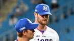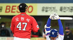 [OSEN=대구, 최규한 기자] 22일 오후 대구 삼성라이온즈파크에서 ‘2021 신한은행 SOL KBO리그’ 삼성 라이온즈와 SSG 랜더스의 경기가 열렸다.5회말 1사 1, 2루 상황 SSG 선발 오원석의 몸쪽 폭투에 놀란 삼성 구자욱이 스트레칭