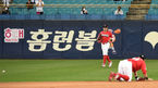 [OSEN=대구, 최규한 기자] 22일 오후 대구 삼성라이온즈파크에서 ‘2021 신한은행 SOL KBO리그’ 삼성 라이온즈와 SSG 랜더스의 경기가 열렸다.4회말 1사 1, 2루 상황 삼성 박해민의 투수 앞 땅볼 때 상대 실책을 틈타 홈을 밟은