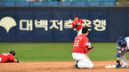 [OSEN=대구, 최규한 기자] 22일 오후 대구 삼성라이온즈파크에서 ‘2021 신한은행 SOL KBO리그’ 삼성 라이온즈와 SSG 랜더스의 경기가 열렸다.4회초 1사 1루 상황 SSG 최정의 삼진 때 주자 추신수가 2루 도루에 성공하고 있다. 포