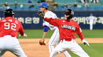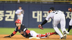 [OSEN=잠실, 지형준 기자] 22일 오후 서울 잠실야구장에서 ‘2021 신한은행 SOL KBO리그’ LG 트윈스와 KIA 타이거즈의 경기가 열렸다.9회초 2사 1루에서 KIA 최정민이 LG 오지환에 앞서 2루 도루에 성공하고 있다. /jpnews@osen.co.kr