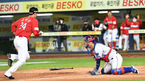 [OSEN=대구, 최규한 기자] 22일 오후 대구 삼성라이온즈파크에서 ‘2021 신한은행 SOL KBO리그’ 삼성 라이온즈와 SSG 랜더스의 경기가 열렸다.8회초 무사 1, 3루상황 SSG 최정의 내야 땅볼 때 3루수 강한울의 홈 손구가 주자 오태