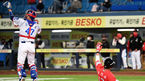 [OSEN=대구, 최규한 기자] 22일 오후 대구 삼성라이온즈파크에서 ‘2021 신한은행 SOL KBO리그’ 삼성 라이온즈와 SSG 랜더스의 경기가 열렸다.8회말 무사 1, 3루 상황 삼성 김지찬이 번트를 시도했지만 1루수 뜬공으로 물러나며