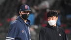 [OSEN=잠실, 지형준 기자] 22일 오후 서울 잠실야구장에서 ‘2021 신한은행 SOL KBO리그’ LG 트윈스와 KIA 타이거즈의 경기가 열렸다.8회말 무사 3루에서 LG 한석현이 오지환의 희생플라이에 홈을 밟고 김현수와 기뻐하고 있다. /