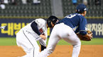 [OSEN=잠실, 이대선 기자] 23일 오후 서울 잠실야구장에서 ’2021 신한은행 SOL KBO 리그' 두산 베어스와 NC 다이노스의 경기가 열렸다.4회초 무사 1루에서 두산 김재호가 NC 나성범의 내야땅볼 때 1루주자 노진혁을 포스아웃 처리하