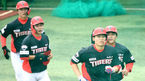 [OSEN=익산, 최규한 기자] 23일 오후 전북 익산시 익산야구장에서 '2021 KBO 퓨처스리그' KT 위즈와 KIA 타이거즈의 경기가 열렸다.7회초 2사 만루 상황 KIA 김호령이 추격의 우월 만루포를 날리고 홈을 밟은 뒤 동료들과 인사를 나누고