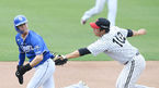 [OSEN=이천, 민경훈 기자] 23일 오후 경기도 이천시 LG챔피언스파크에서 '2021 KBO 퓨처스리그' LG 트윈스와 삼성 라이온즈의 경기가 열렸다.5회말 1사 주자 1루 LG 김호은의 병살타때 1루에서 문보경을 포스아웃시킨 삼성 유격수 이해