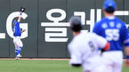 [OSEN=이천, 민경훈 기자] 23일 오후 경기도 이천시 LG챔피언스파크에서 '2021 KBO 퓨처스리그' LG 트윈스와 삼성 라이온즈의 경기가 열렸다.1회말 LG 선두타자 이주형의 타구를 삼성 우익수 김성윤이 점프하며 잡아내고 있다./rumi@osen.c