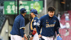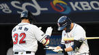 [OSEN=잠실, 이대선 기자] 24일 오후 서울 잠실야구장에서 ’2021 신한은행 SOL KBO 리그' 두산 베어스와 NC 다이노스의 경기가 열렸다.5회말 무사에서 두산 김재환이 중월 솔로 홈런을 치고 홈에서 양석환의 축하를 받고 있다. /sund